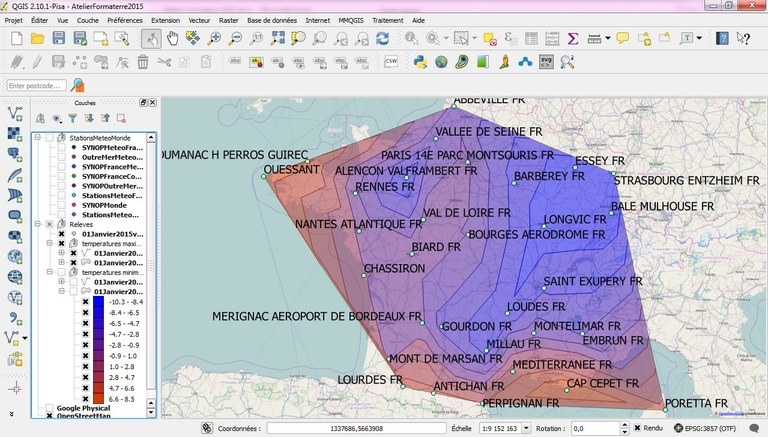 Traitement des données du réseau SYNOP et des Modèles Climatiques avec QGIS (2015)