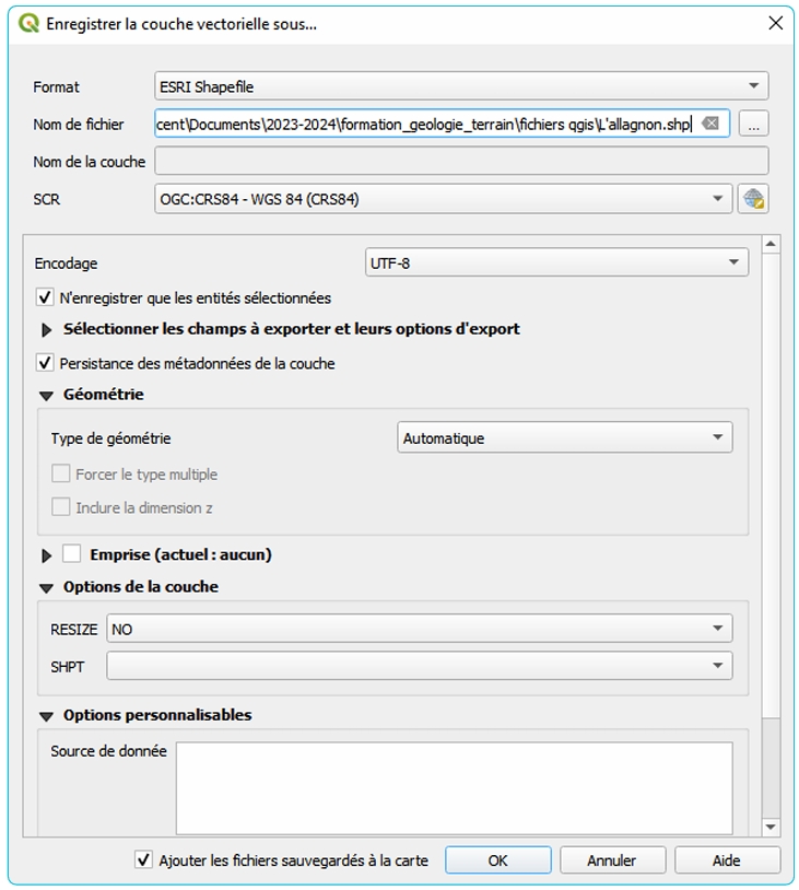 Puis cliquez sur « OK » dans la fenêtre « Enregistrer la couche vectorielle sous... ».