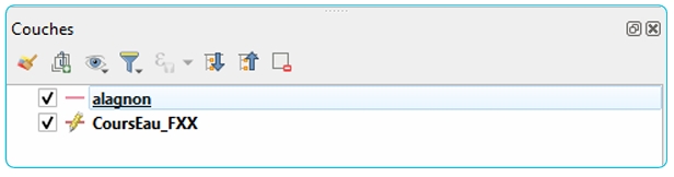 La nouvelle couche contenant uniquement l’attribut souhaité s’affiche dans la fenêtre « couches » (ici l’Alagnon).