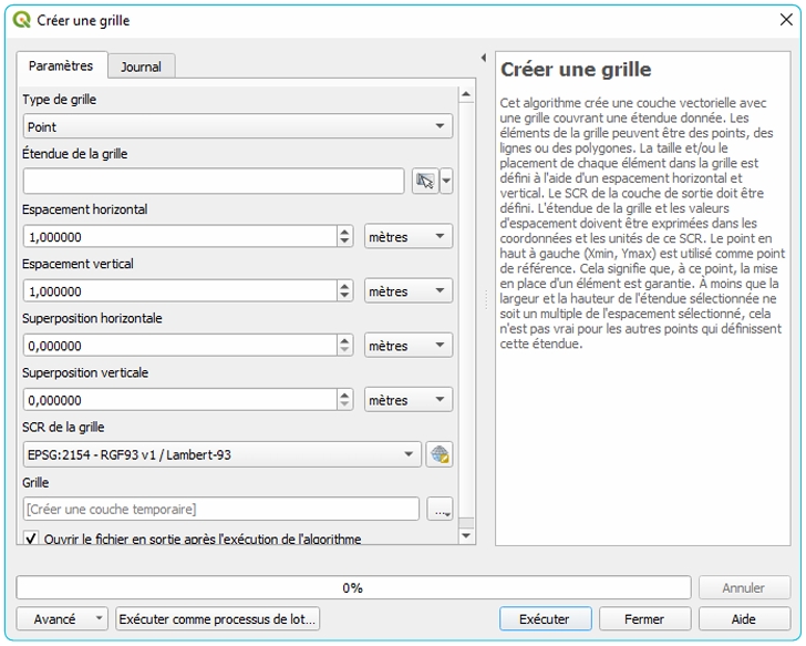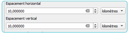 Pour l’espacement des lignes de la grille, si vous choisissez 10 km en espacement horizontal et vertical, la grille générée aura des carrés de 10 km de côté.