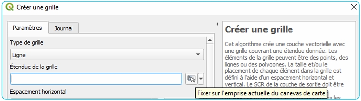 Pour le paramètre « Etendue de la grille », sélectionnez la vue actuelle en cliquant sur l’icône à droite du formulaire (voir ci-dessous).