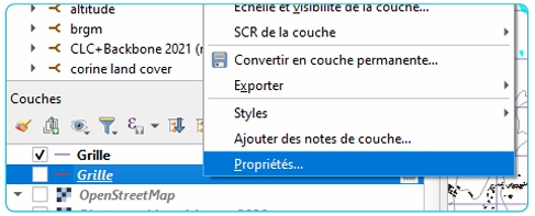 Pour modifier la couleur de la grille, cliquez-droit sur la couche de donnée mentionnée dans le cadre en bas à gauche.