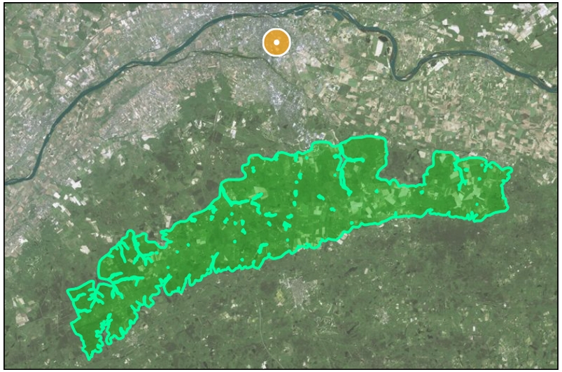 Par exemple, exportation de la couche de données géologique extraite précédemment : les Alluvions de la haute terrasse de Loire, Pléistocène au sud du val de Loire orléanais (fiche 16 précédente).
