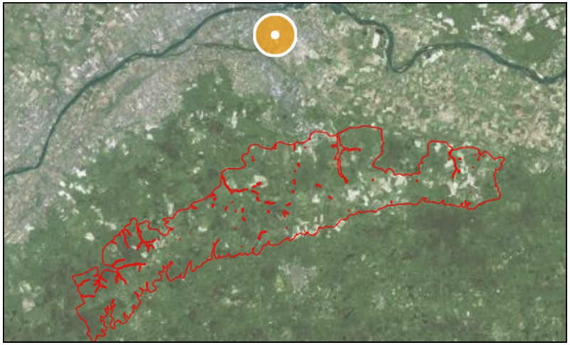 La couche de données des alluvions pléistocènes s’affiche en contours rouges dans Géoportail.