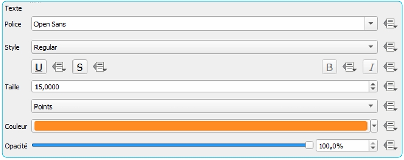 Style des étiquettes avec l’ensemble des réglages définis précédemment :