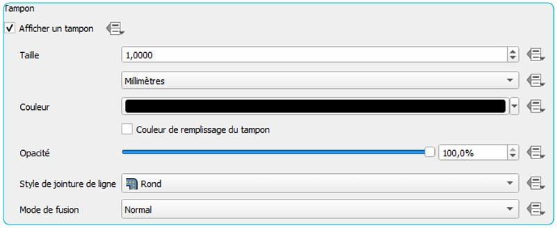 On peut modifier la taille, la couleur, le type de contour du tampon, etc.