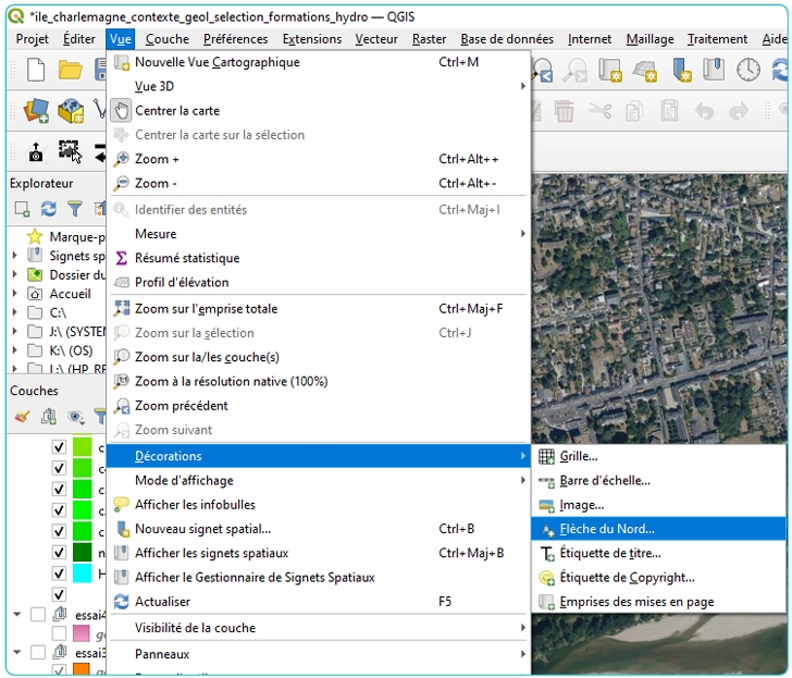 Cliquez sur l’onglet « Vue » et choisissez « Décorations » puis « Flèche du Nord ».