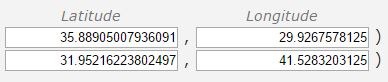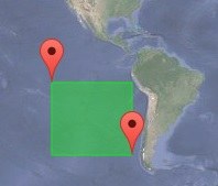 A ce stade soit vous rentrer les coordonnées GPS dans les cases en respectant les consignes données précédement. Soit vous définissez une zone à l'aide de la souris en plaçant deux punaises rouges aux angles supérieur gauche et inférieur droit de l'aire à recouvrir. La zone sélectionnée apparaîtra en vert.
