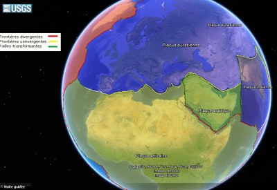 Le globe terrestreVisualiser les plaques lithosphériques Accès à la démarche pédagogique et au fichier .kmz Relier frontières des plaques et flux thermique Frontières des plaques et flux thermique ( fichier support de cours) Relier frontières des plaques et volcanisme Frontières des plaques et volcanisme ( fichier support de cours) |
