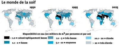 Source : COLLECTIF (1999, février) "Eau douce: à quel prix ? " dans Le courrier de l’Unesco sur le site Organisation des Nations Unies pour l’Education, la Science et la Culture (UNESCO). Page consultée le 04/03/2005.