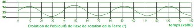 Si l'angle est plus faible que l'actuel le climat se refroidit et à l'inverse s'il augmente la climat se réchauffe.