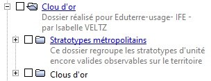 - Cliquer sur le + devant le dossier "Clous d'or" afin de découvrir les deux dossiers de travail