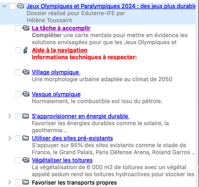 Compléter une carte mentale à l'aide des différentes informations du fichier KMZ pour mettre en évidence les solutions envisagées pour que les Jeux Olympiques et paralympiques soient durables. |