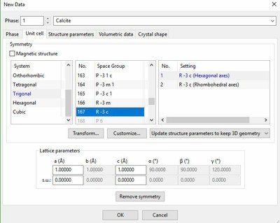 - Valider en cliquant sur OK en bas de la fenêtre afin de faire apparaitre le cristal de calcite.