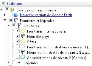 Ne pas oublier de cocher dans "Calques" "Frontières", "Nom des pays "