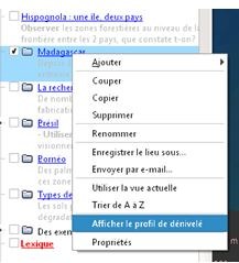 Cocher "Madagascar" cliquer 2 fois pour se rendre au lieu indiqué. Un clic droit permet d'afficher le dénivellé |