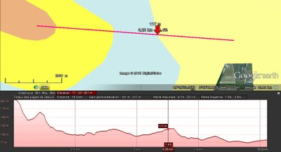 Il est tout à fait possible de modifier l'emplacement de ce transect en déplaçant les points ou d'en faire un dans la région de votre choix pédagogique. Pour cela dans le menu "Outil" choisir "Règle" puis "Trajet" et placer les deux point de part et d'autre de la zone à étudier. Enregistrer le trajet dans le dossier constitué des fichiers kml.