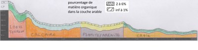 - Représenter sous forme de hachurage d'intensité proportionnelle à au % la quantité de matière organique et légender la couche arable à l'aide des informations recueillies.