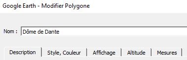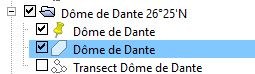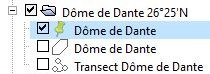 - Ouvrir un des dossiers par exemple "Dôme de Dante" en cochant la case devant la punaise pour localiser précisément l'OCC.