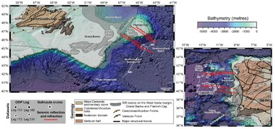 figure 3 . Localisation des transects sur la marge Canadienne et Ibérique replacés dans leur contexte géologique (12).