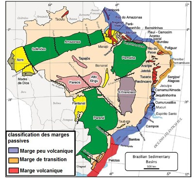 Les forages réalisées dans les zones de Transitions entre le domaine Océanique et Continental (TOC) ont permis de distinguer 3 grands types de marges passives, réparties de manière relativement "anarchique" à la surface du globe (fig. 1) :