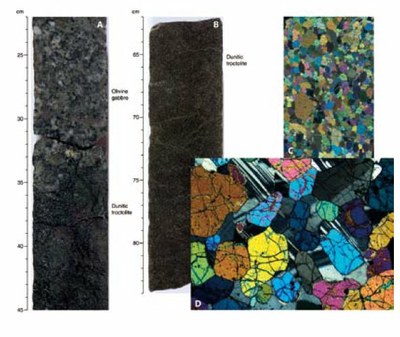 figure 8 : Extrait du carottage (U1309D) et lame minces des gabbros et troctolites .