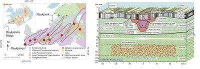 figure 5 : Localisation de la dorsale de Reykjanes et interprétation sismique de la structure de la croûte magmatique(4)