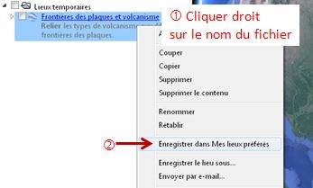 1. Alors que vous avez une connexion à Internet, télécharger ou ouvrir directement le petit fichier dans Google Earth. Il s'ouvre alors dans "lieux temporaires". 2. Enregistrer dans "mes lieux préférés" en faisant un clic droit sur le nom du fichier. 3. Parcourir, même rapidement les données du fichier afin qu'elles se mettent dans le cache de Google Earth. 4. Couper votre wi-Fi et vérifier qu'effectivement toutes les données s'affichent encore. 5. Fermer Google Earth. vous retrouverez votre fichier dans "Mes lieux préférés" lors de son ouverture. |