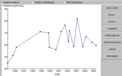 Remarque : La moyenne des mesures ne montre pas l'évolution des teneurs. Il est préférable d'afficher les graphes Exemple : Variation de la teneur en nitrates à Lutz en Dunois (28)