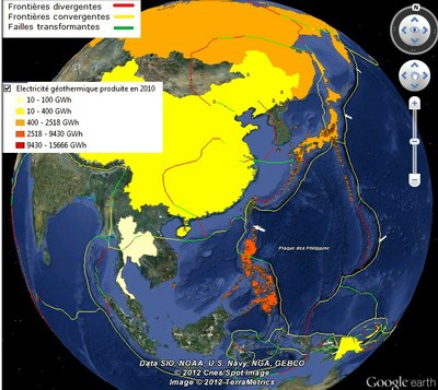 Utiliser la chaleur de la Terre Géothermie de France.kmz La géothermie est-elle utilisable dans le nord-est de la France ? Géothermie dans le nord-est de la France.kmz Etude de deux ressources géothermiques en France : Alsace.kmz - Bouillante.kmz |