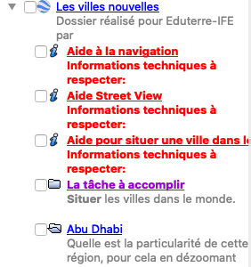 Les textes explicatifs ou les tâches proposées s'affichent à l'écran en cliquant sur le triangle noir ► Cliquer sur " La tâche à accomplir" |
