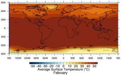 - Rechercher si en février on observe des variations de la répartition des zones froides ou des zones chaudes.