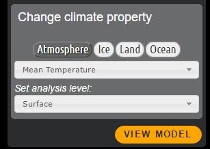 - Cliquer sur "view climate model" pour étudier la répartition des zones froides et chaudes si la Terre était à la place de la planète Mars.