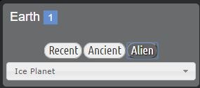 - Une autocorrection est possible en cliquant dans la fenêtre Earth 1 sur Alien, puis en choisissant dans le menu déroulant "Ice Planet"