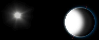 - Représenter sur le même schéma la surface éclairée de la Terre.