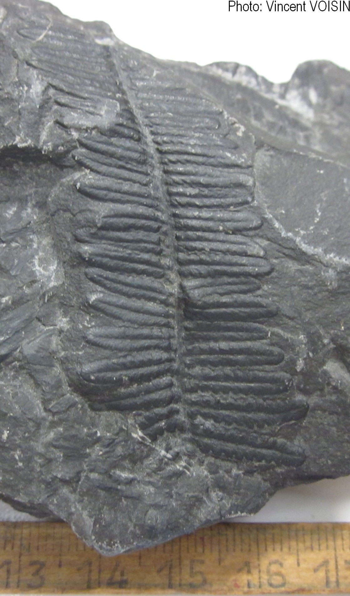 Photo 3. Roche avec fossiles de tronc de Calamites. |