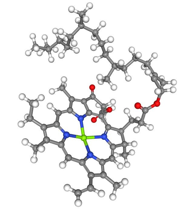 Figure 8. Chlorophylle A avec extrémité phytol et anneau porphyrine (modèle moléculaire LibMol). |