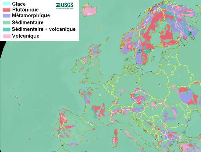 La nature des roches observables en surface : Cocher la case "Carte géologique mondiale" afin d'afficher les données et la légende.