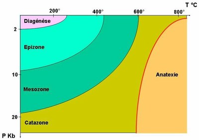 En principe, le domaine de métamorphisme s'étend en température de 50°/100°C à 650/700°C
